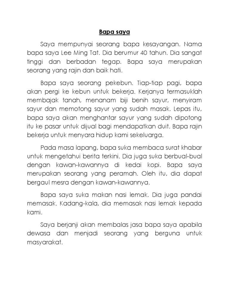 Karangan contoh Kumpulan C. Ayah saya bernama Othman bin Haji Mohamed Faiz. Contoh karangan bi tentang diri saya.
